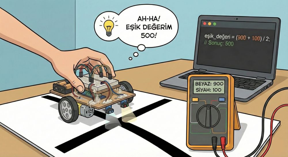 Çizgi İzleyen Sensör Kalibrasyonunun Önemi Öğrencilerle çizgi izleyen robot yapıyorsunuz ve bunun için analog 8'li sensör kullanıyorsunuz.
